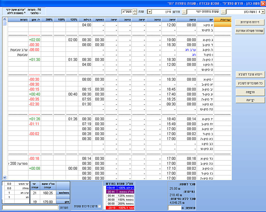 תוכנת הנוכחות מאפשרת בחירה והצגת שעות העובדים לפי הלוח העברי